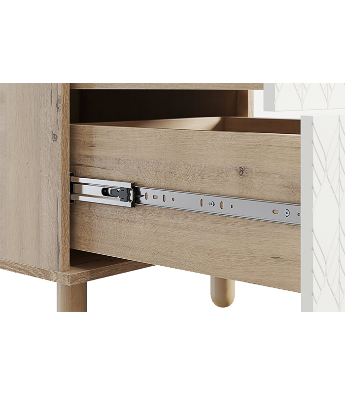 Phụ kiện ray kéo cao cấp giúp thao tác đóng mở nhẹ nhàng và êm ái. Từng chi tiết đều được kiểm tra kỹ trước khi xuất xưởng để đảm bảo chất lượng tốt nhất đến tay khách hàng. Màu trắng tinh khôi của sản phẩm dễ dàng kết hợp với nhiều phong cách nội thất – từ Bắc Âu, Tối giản cho đến Hiện đại – mà vẫn giữ được sự nhẹ nhàng và thanh khiết.
