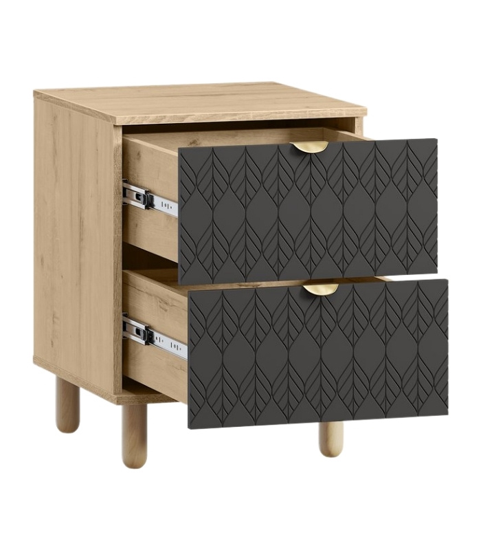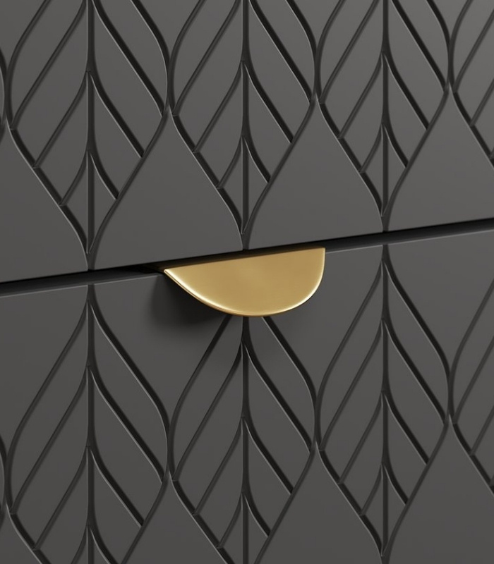 Tủ Đầu Giường Tedjons Xám Chì – 1 toát lên vẻ đẹp hiện đại, sang trọng và vững chãi. Gam màu xám chì trầm kết hợp cùng họa tiết lá chạm nổi trên cánh sơn hoàn thiện mang đến nét cá tính tinh tế, phù hợp cho những không gian có tông nội thất trung tính hoặc tối giản.