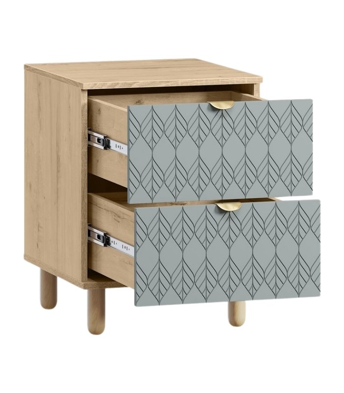 Sản phẩm gồm hai ngăn kéo có ray trượt êm ái, vận hành chắc tay. Các chi tiết được hoàn thiện tỉ mỉ bởi đội ngũ thợ lành nghề của xưởng TinHome, giúp tủ có độ hoàn thiện cao, không kêu rít hay lệch khớp.