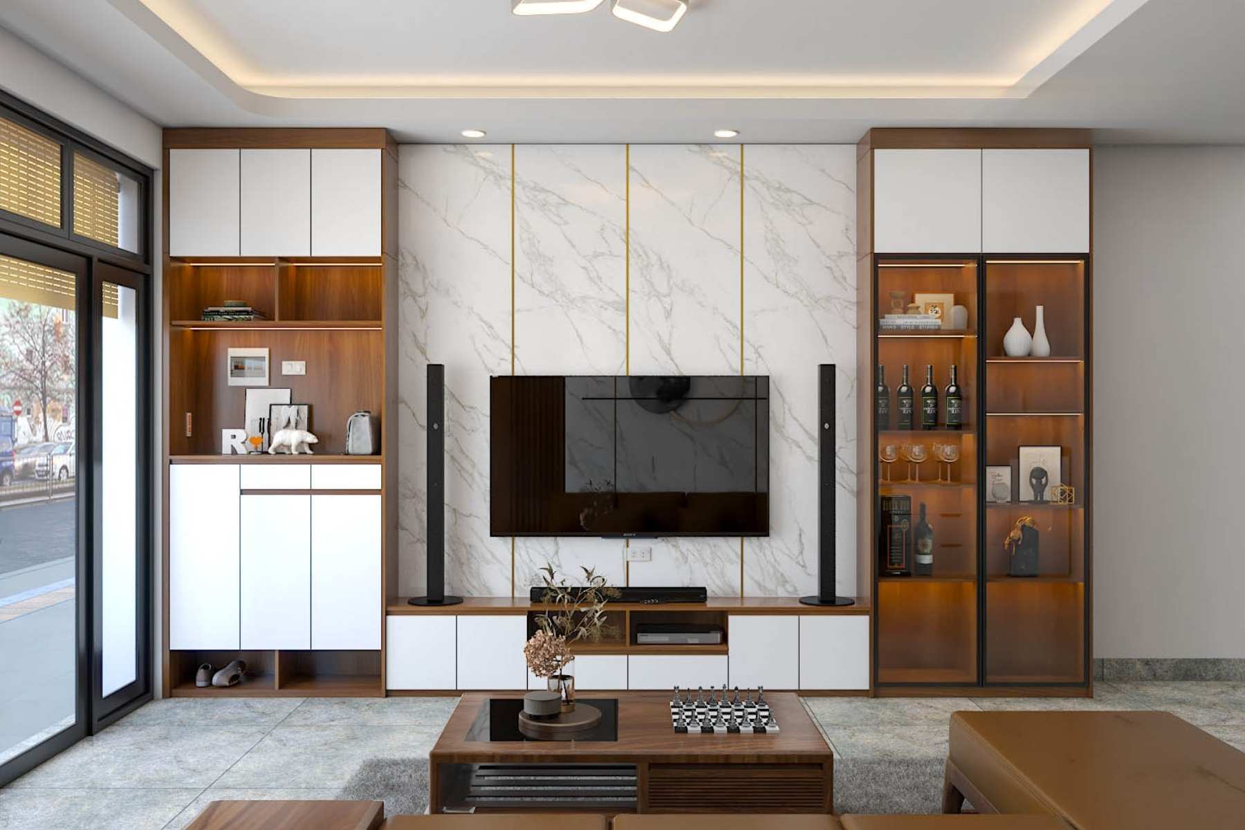 Đường nét thiết kế vuông vức, hiện đại, hạn chế chi tiết rườm rà, giúp sản phẩm dễ dàng kết hợp với các hạng mục nội thất khác như kệ tivi hay tủ rượu. Tỷ lệ được tính toán hợp lý để vừa đảm bảo công năng, vừa giữ được sự thanh thoát trong tổng thể.