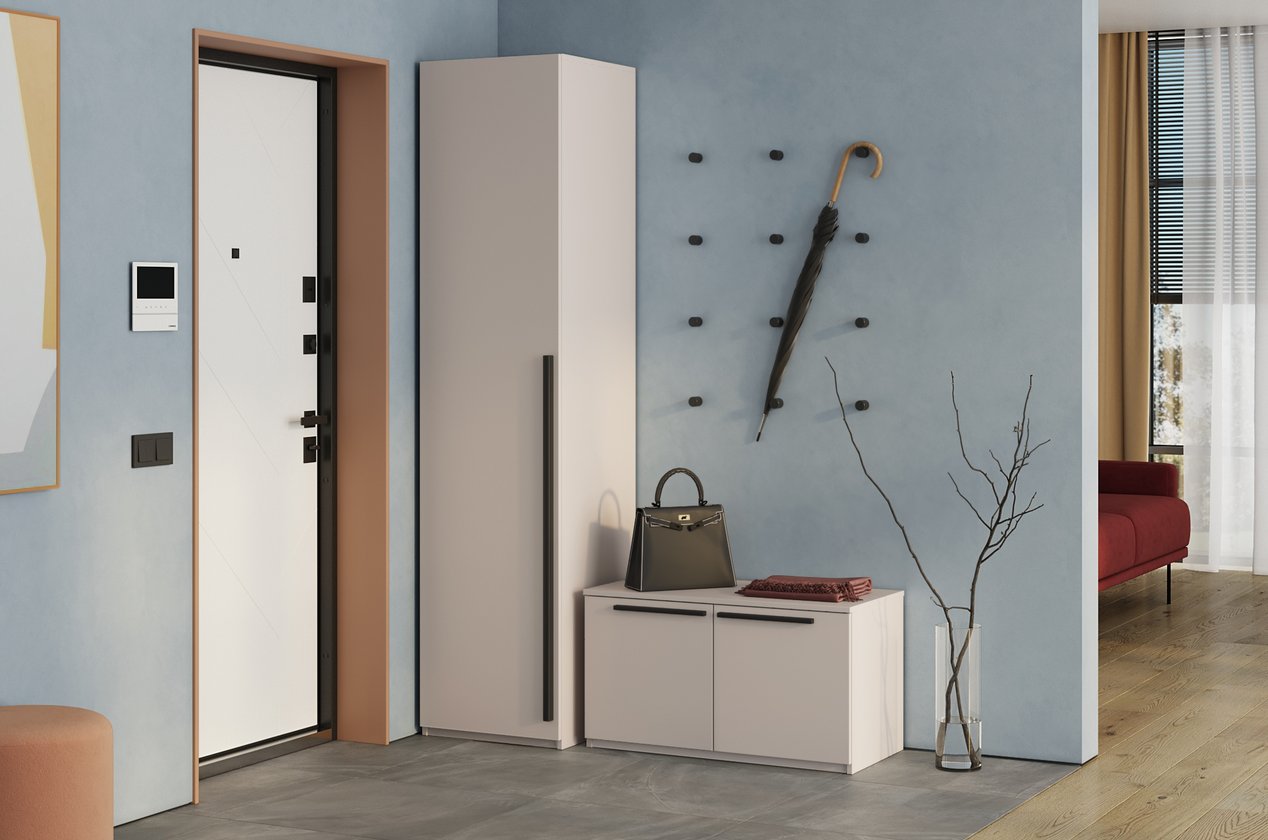 Tủ giày Kimball Cà Phê Sữa – 1.1 gây ấn tượng với gam màu ấm áp, mang lại cảm giác gần gũi và thanh lịch cho ngôi nhà. Sản phẩm được gia công từ gỗ MDF phủ Melamine chống ẩm, giúp tủ bền chắc, ít trầy xước và dễ lau chùi.