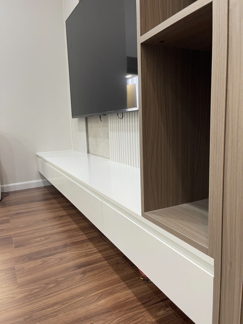 Tủ chắc chắn, cánh mở êm, màu lên rất chuẩn. Đội thi công làm nhanh và sạch sẽ.