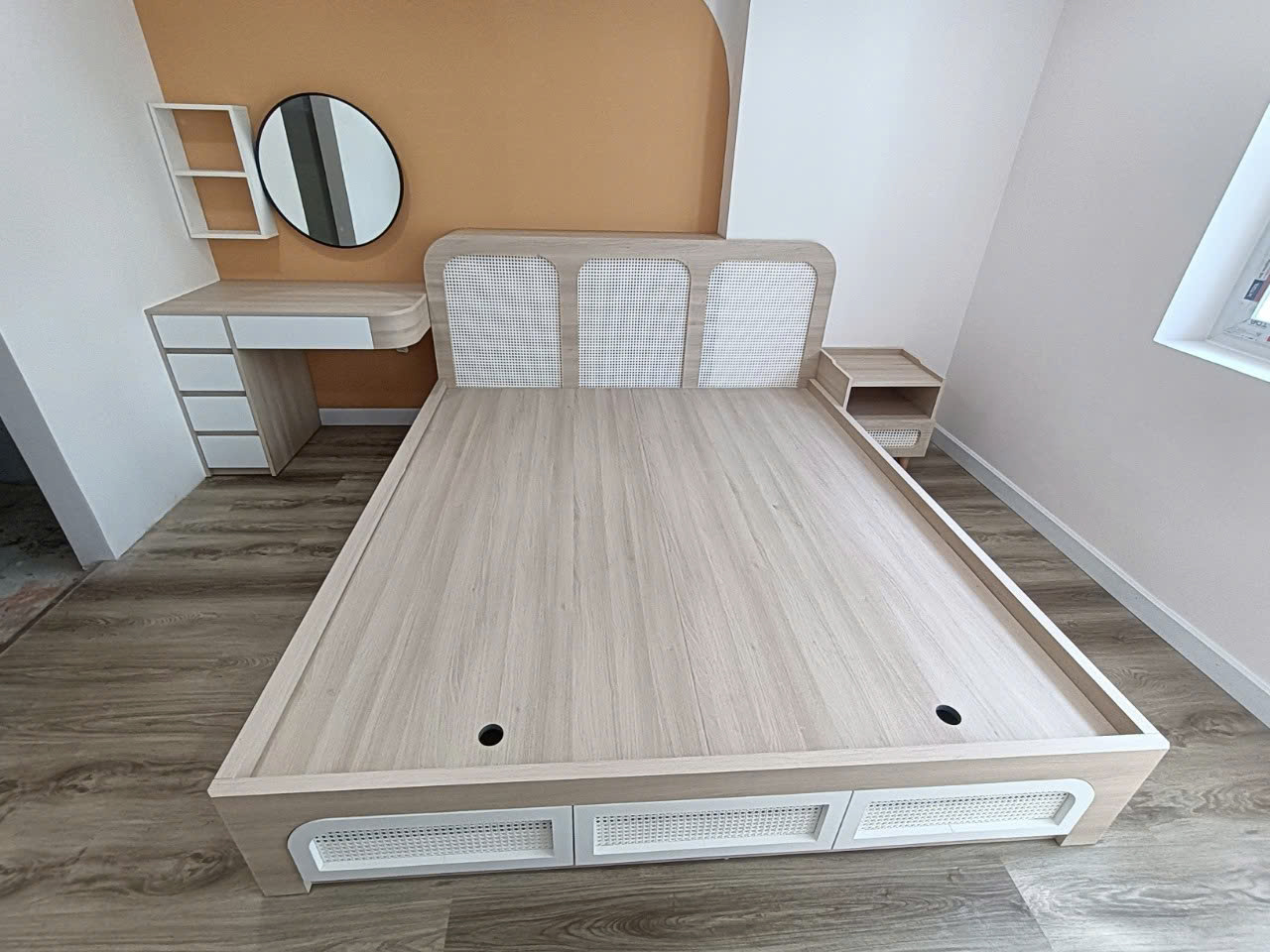 Hàng đẹp hơn mong đợi, sơn phủ đều, cánh tủ đóng mở không tạo tiếng ồn.