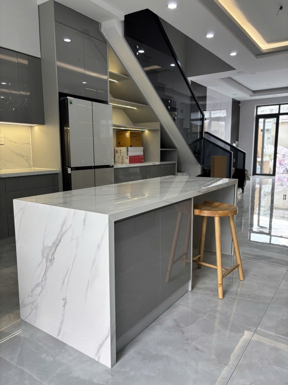 Tủ đứng vững, màu cà phê sữa rất sang, đội thi công đến đúng giờ.