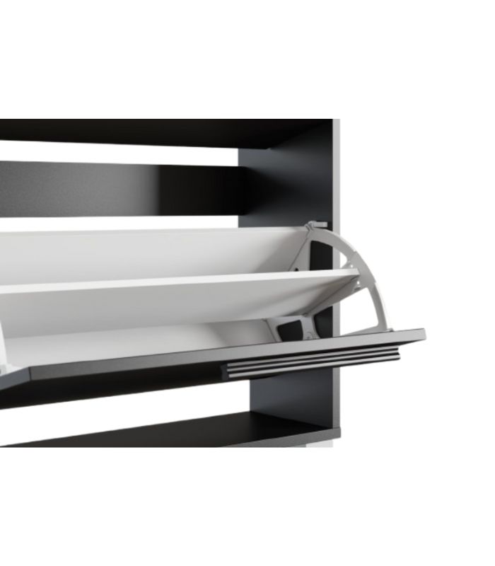 Sản phẩm được làm từ gỗ MDF phủ Melamine chống ẩm, bền chắc, hạn chế trầy xước và dễ vệ sinh. Các ngăn tủ mở trượt nhẹ nhàng, cho phép lưu trữ giày dép gọn gàng, giúp không gian luôn sạch sẽ và ngăn nắp.