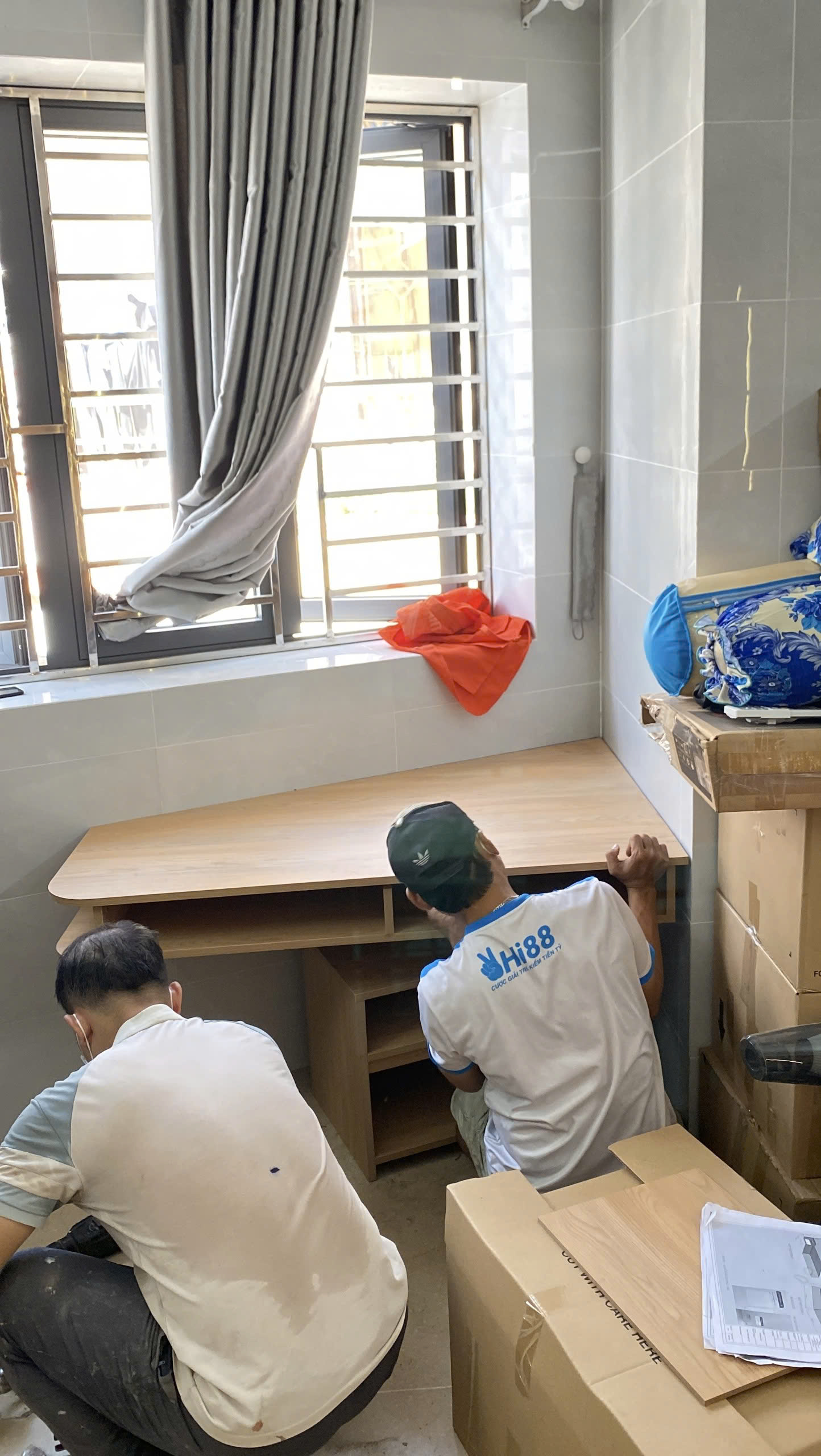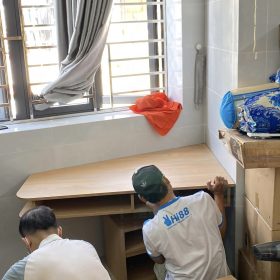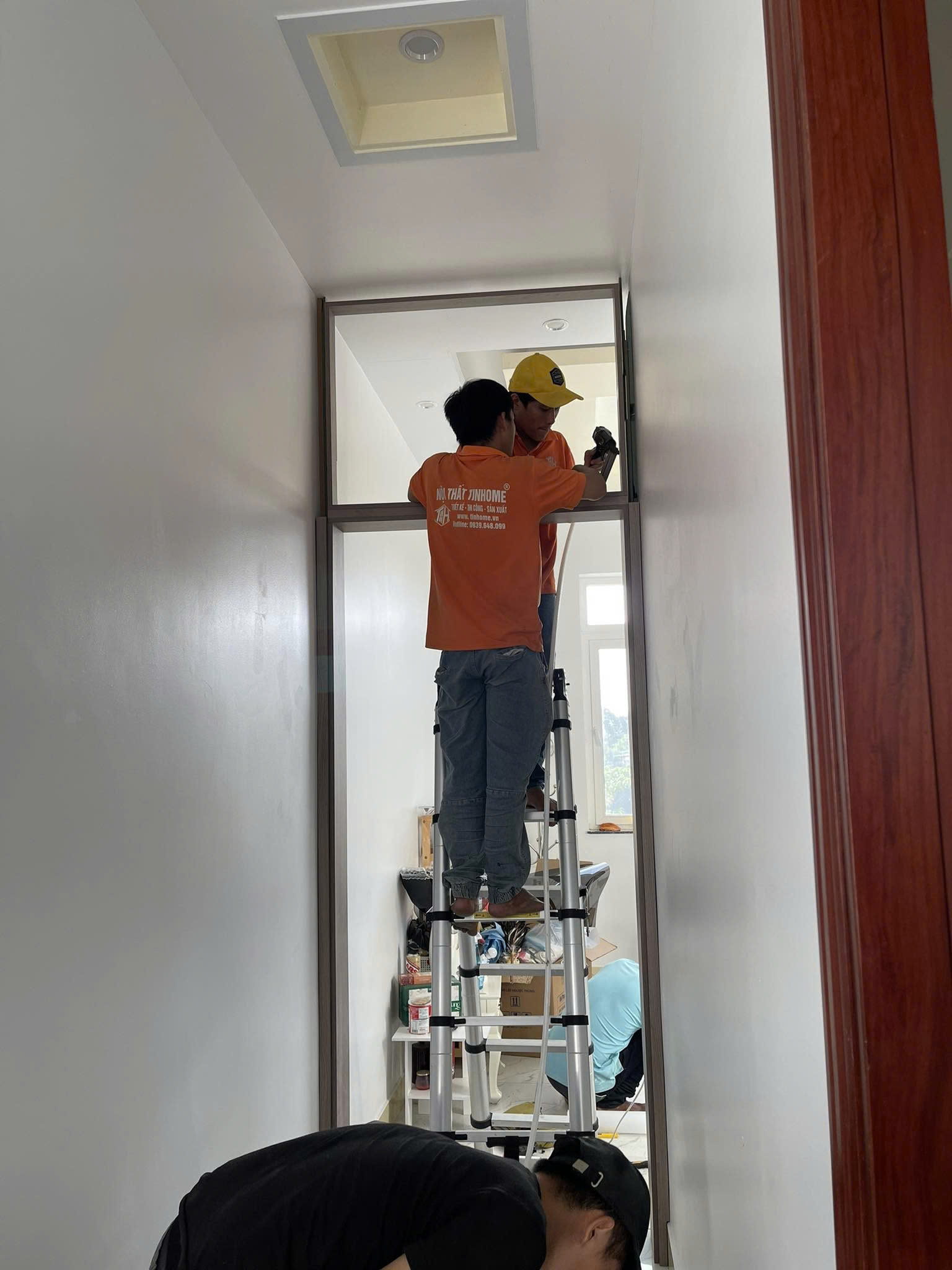 Đội thi công làm việc chuyên nghiệp, tủ giày hoàn thiện đúng hẹn