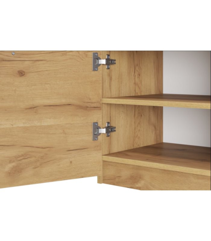 Phần mặt trên tủ có thể tận dụng làm khu vực trưng bày vật trang trí hoặc đồ cá nhân. Màu gỗ sồi tự nhiên mang lại cảm giác thư giãn, dễ chịu, phù hợp nhiều phong cách nội thất khác nhau.
