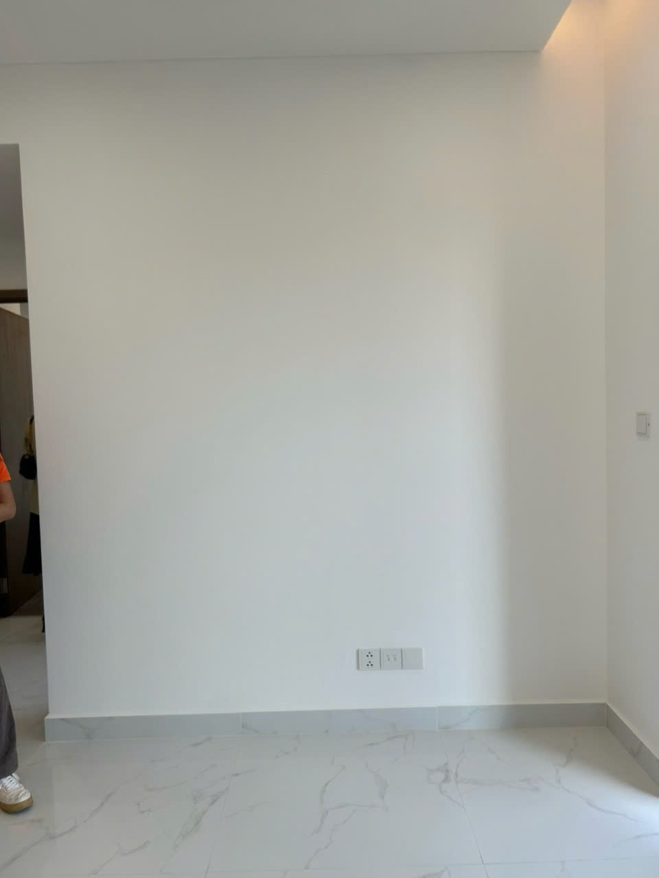 Tủ giày màu xám giúp không gian trông gọn và sang hơn.