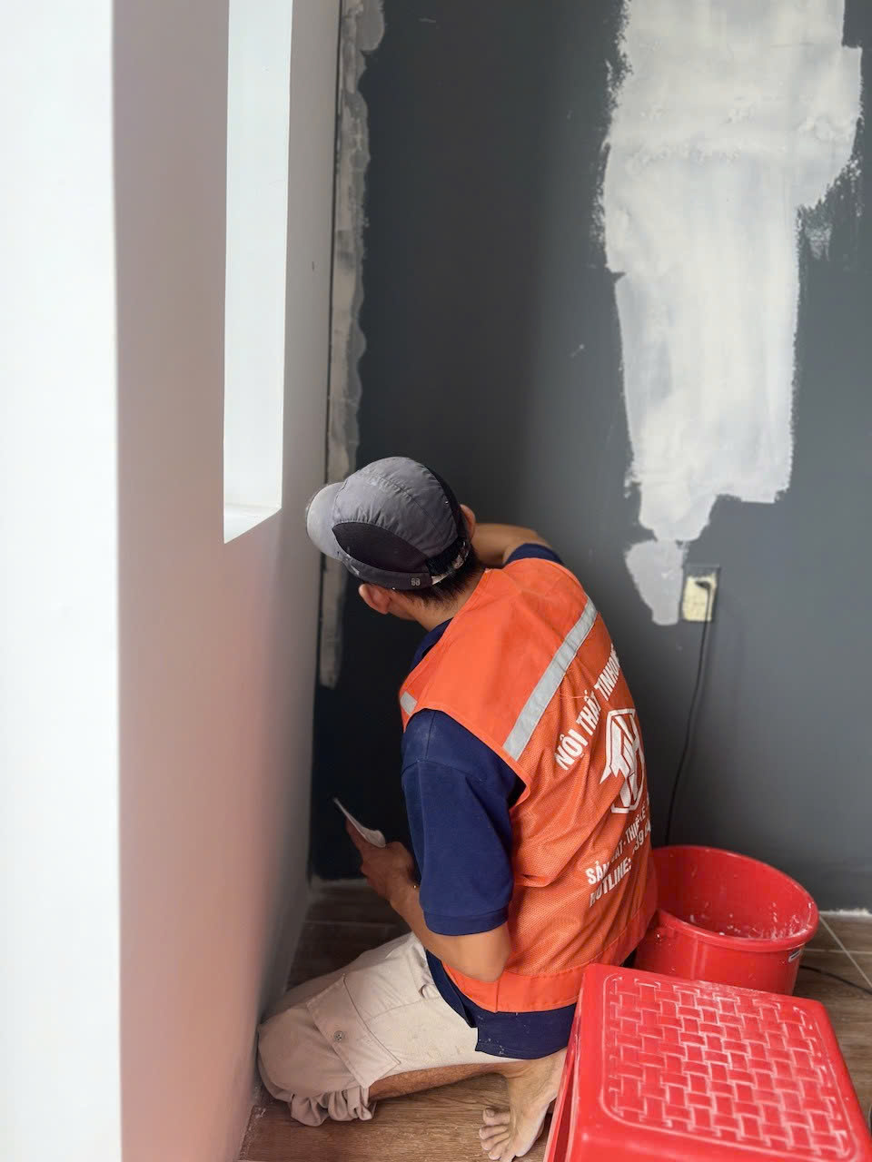 Màu xám lên thực tế đẹp, dễ phối nội thất, đội thi công làm việc gọn gàng.