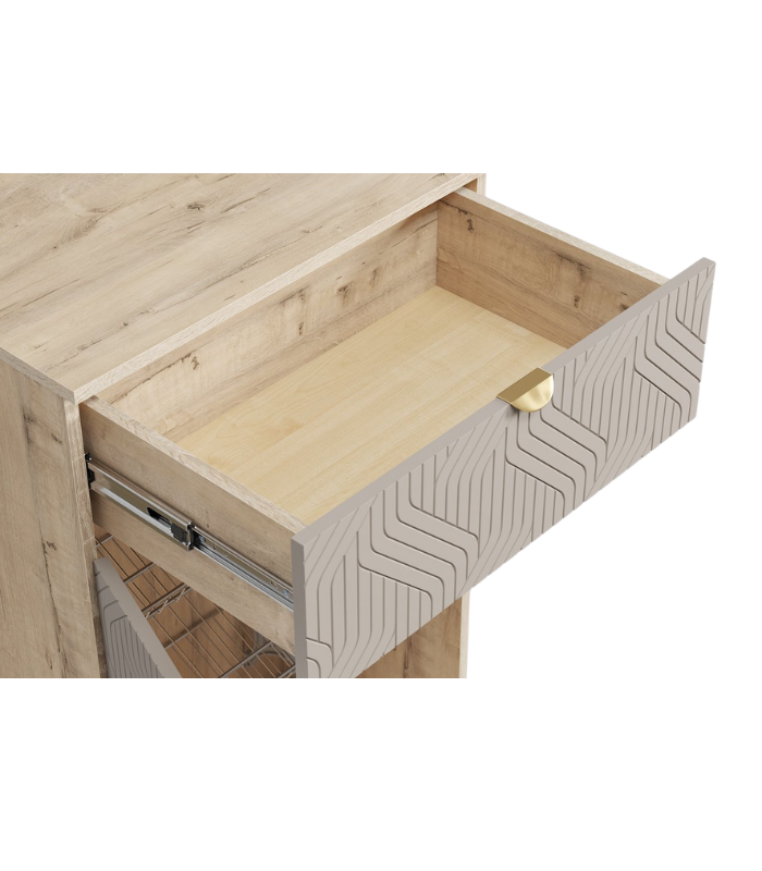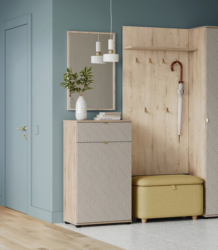 Màu Cà Phê Sữa nhẹ nhàng phù hợp với các phong cách nội thất hiện đại – tối giản. Tủ gồm 1 ngăn kéo phía trên, tiện lợi cho việc cất giữ vật dụng nhỏ gọn. Bên dưới là 1 cánh tủ lớn, mở ra hệ thống thanh để giày giúp sắp xếp khoa học. Kết cấu kệ bên trong hỗ trợ thông thoáng, hạn chế mùi và giữ form giày. Thiết kế thông minh giúp tối ưu diện tích sử dụng. Hoa văn tinh tế ở mặt ngoài tôn lên giá trị thẩm mỹ cao cấp của sản phẩm.