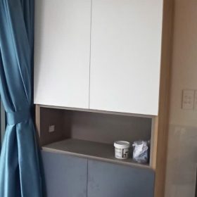 Tủ thiết kế gọn gàng, đặt ở cửa ra vào nhìn khá sang. Thời gian thi công nhanh hơn dự kiến.