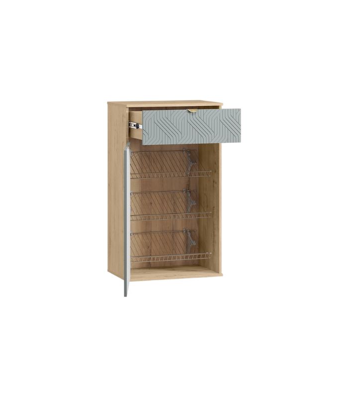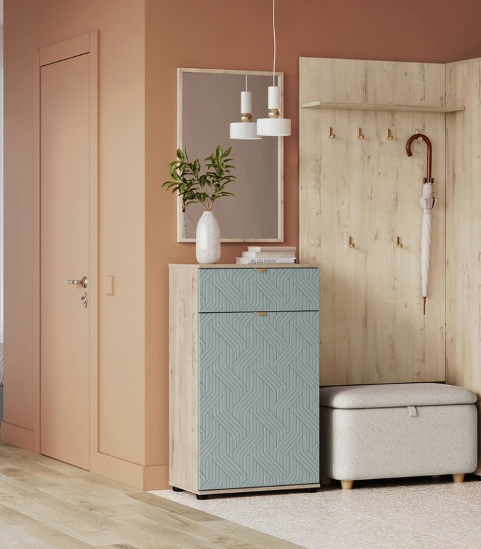 Màu Xanh Dương Nhạt trẻ trung và dịu mắt, dễ phối với nhiều phong cách nội thất. Tủ sở hữu 1 ngăn kéo trên cùng, thuận tiện lưu trữ các vật dụng cá nhân. Bên dưới là 1 cánh mở rộng, bên trong được trang bị các thanh để giày thông minh. Thiết kế khoa học giúp sắp xếp giày ngay ngắn, dễ lấy và tiết kiệm không gian. Các thanh để giày giúp giày dép luôn khô thoáng và sạch sẽ. Hoa văn tinh tế phía ngoài giúp sản phẩm nổi bật và mang nét thẩm mỹ riêng.