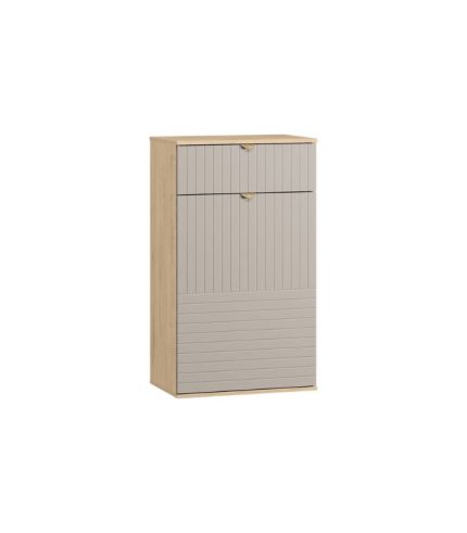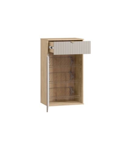 Kích thước 63x40x110 phù hợp cho cả căn hộ nhỏ hoặc các góc hành lang cần sắp xếp gọn gàng. Thiết kế tủ gồm 1 ngăn kéo phía trên, tiện để chìa khóa, lược, bao tay hoặc đồ linh tinh khi ra – vào nhà. Bên dưới là 1 cánh mở ra toàn bộ hệ thống kệ đựng giày rộng rãi. Các thanh kệ được bố trí thông minh, giúp chứa được từ 12–18 đôi tùy kích cỡ. Khoảng rộng giữa các tầng cho phép đặt cả giày thể thao, giày cao gót hoặc dép đi trong nhà.