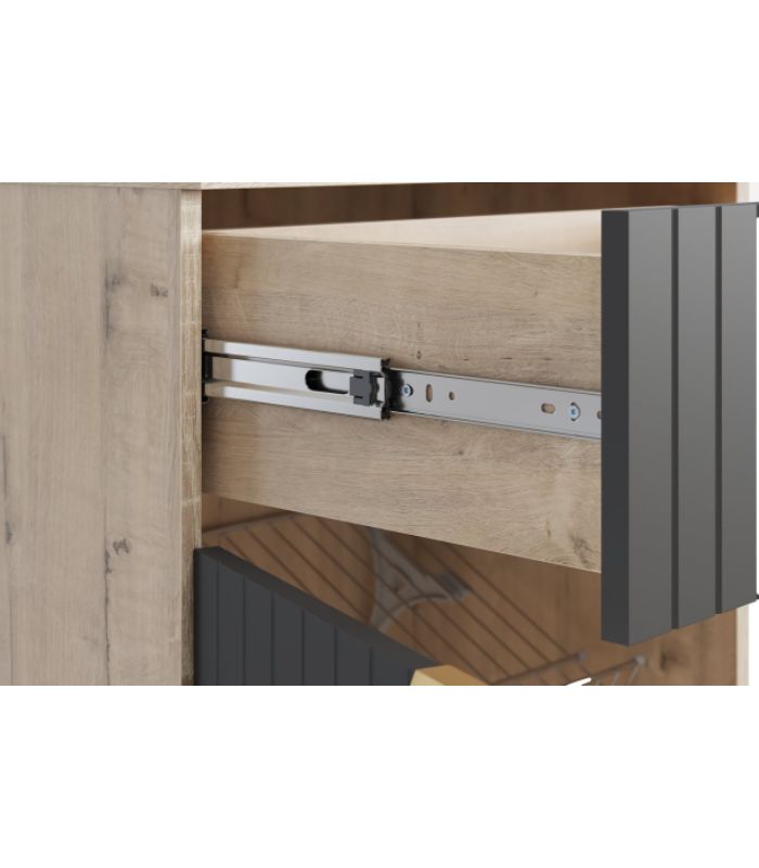 Tông Xám Chì mang lại cảm giác tinh tế, hiện đại, rất dễ phối với các nội thất màu gỗ, trắng hoặc be. Mặt tủ có độ hoàn thiện cao, chạm vào mịn tay, không để lại dấu vân và hạn chế trầy xước. Ngăn kéo trên được trang bị tay nắm nhỏ gọn, đóng mở nhẹ nhàng, êm ái. Cánh tủ dưới bản lớn, tạo cảm giác chắc chắn và giữ form tốt khi sử dụng lâu dài. Tủ giúp tối ưu diện tích, đặc biệt phù hợp với nhà có lối vào nhỏ nhưng cần lưu trữ nhiều giày dép. Công năng tủ đáp ứng được nhu cầu của cả gia đình 3–5 người. Thiết kế tổng thể mang hơi hướng tối giản, phù hợp phong cách Scandinavian, Modern và Minimalist. Phần chân tủ vững chắc, chịu lực tốt, hạn chế thấm nước khi lau dọn sàn nhà.