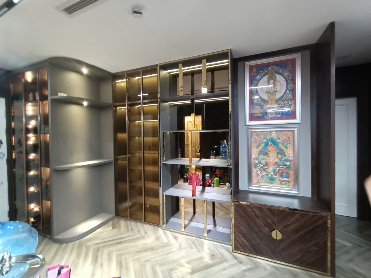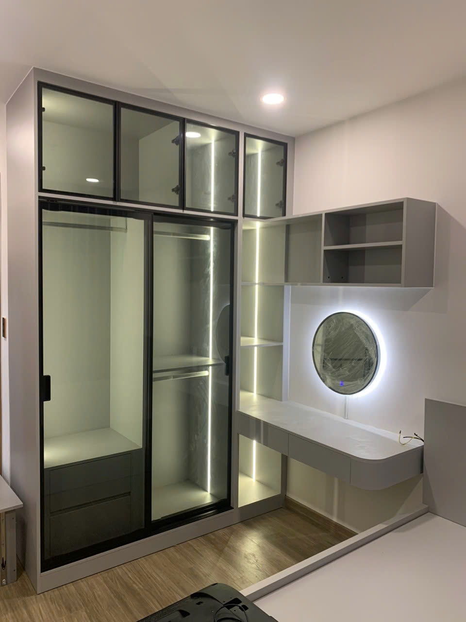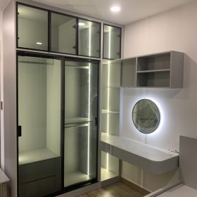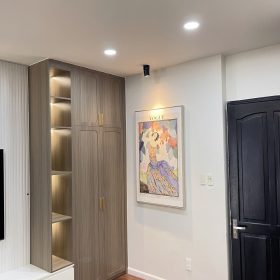 Tủ góc chắc chắn, tận dụng được góc nhà, đội thi công làm việc nhanh gọn.