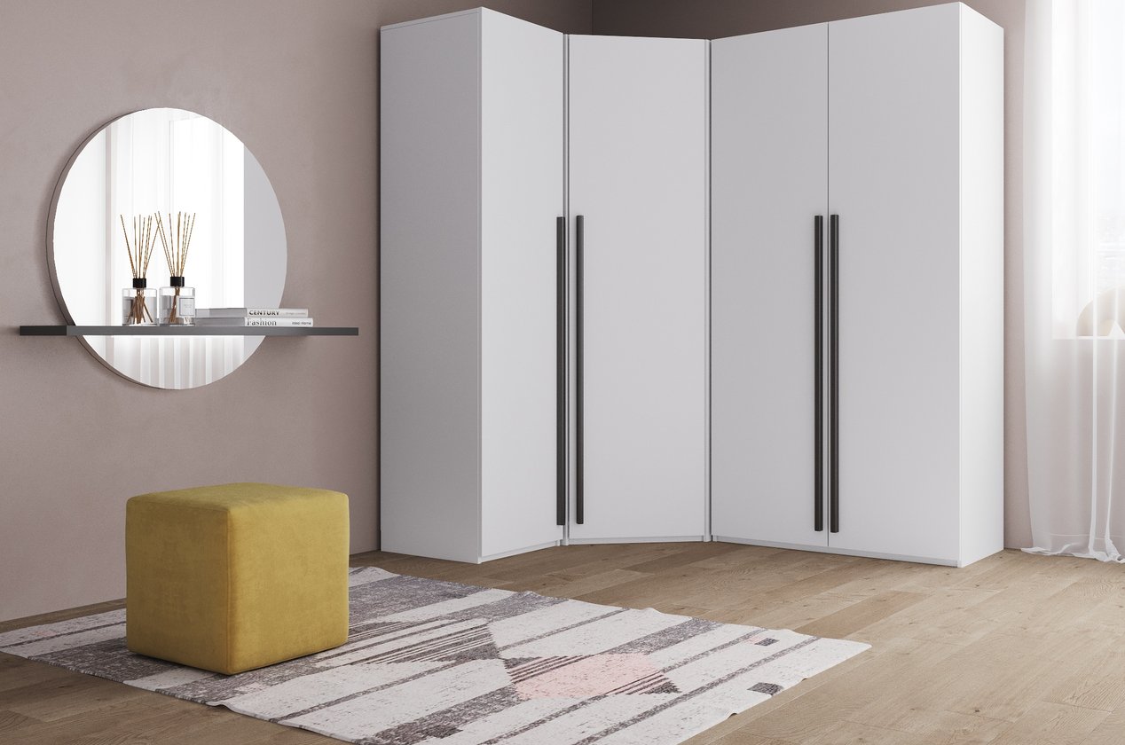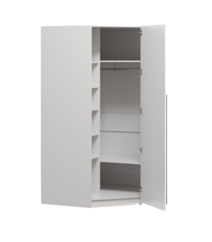 Thiết kế kiểu dáng chữ L, giúp tủ ôm sát góc tường, tối ưu diện tích và tạo cảm giác không gian mở rộng hơn. Gam trắng tinh tế dễ dàng phối hợp với mọi phong cách nội thất, mang lại sự thanh lịch và sáng thoáng cho căn phòng. Tủ góc L Kimball Trắng – 1 không chỉ là món nội thất tiện ích mà còn là điểm nhấn sang trọng cho phòng ngủ hiện đại.