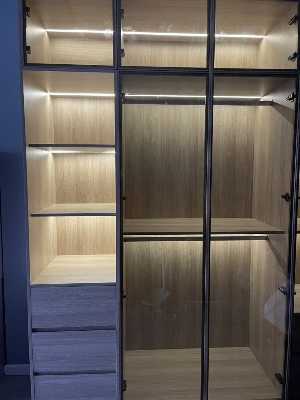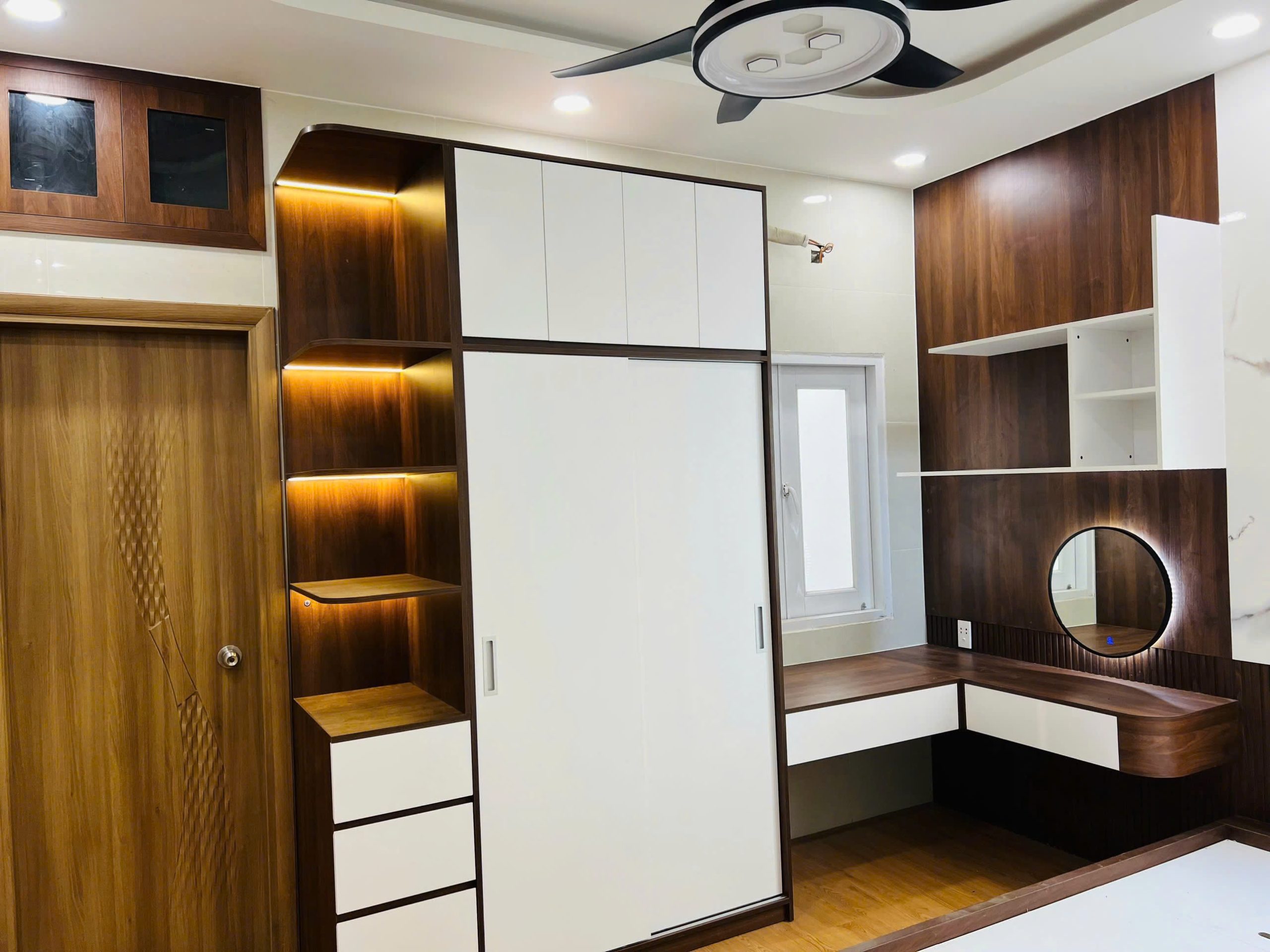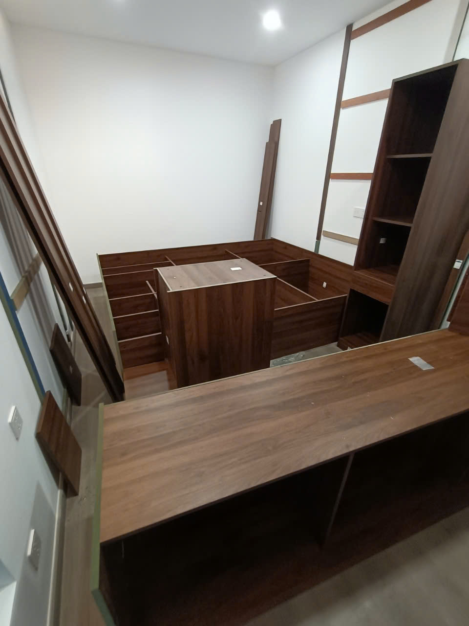 Màu vân gỗ lên thực tế rất ưng, tủ góc làm xong gọn gàng và chắc chắn.