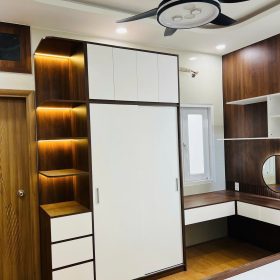 Tủ góc màu vân gỗ nhìn rất tự nhiên và đẹp, thi công nhanh, tư vấn nhiệt tình.