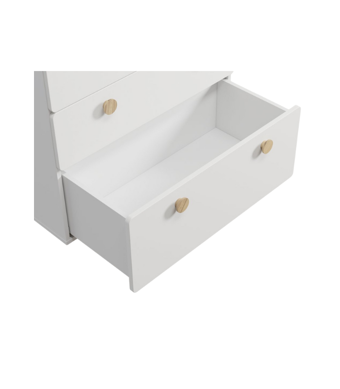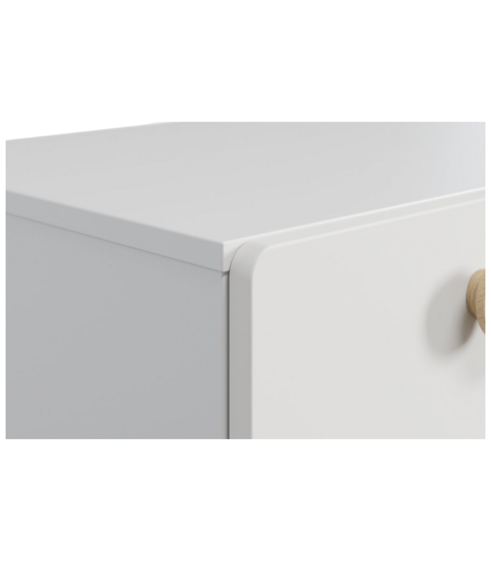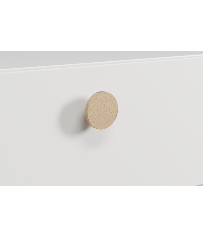 Tay nắm nút tròn gỗ tự nhiên tạo điểm nhấn nhẹ nhàng, đồng thời giúp thao tác mở đóng dễ dàng. Các chi tiết được gia công tỉ mỉ, đảm bảo sự chắc chắn và tính thẩm mỹ cao.