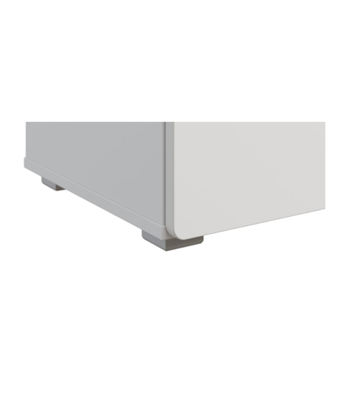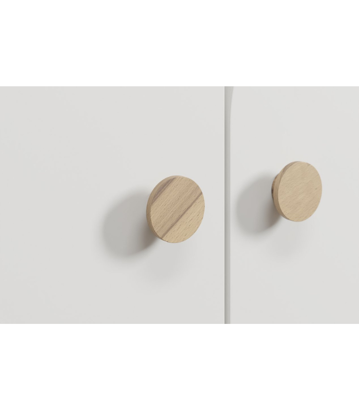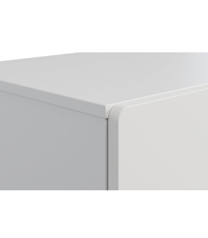 Tủ có kích thước 89 x 42 x 44 cm, thiết kế nhỏ gọn và dễ bố trí trong nhiều không gian khác nhau. Chất liệu MDF phủ melamine chống ẩm giúp tủ luôn bền đẹp và dễ vệ sinh. Cánh tủ sơn PU một mặt mang lại bề mặt nhẵn mịn, sáng bóng và bền màu. Tông trắng tinh tế giúp không gian thêm rộng rãi, thoáng đãng và hiện đại. Tay nắm gỗ tròn tạo điểm nhấn nhẹ nhàng, hài hòa với thiết kế tổng thể. Các cạnh được bo tròn mềm mại, an toàn khi sử dụng. Hai ngăn chứa tiện dụng giúp sắp xếp đồ đạc gọn gàng, tiết kiệm không gian.