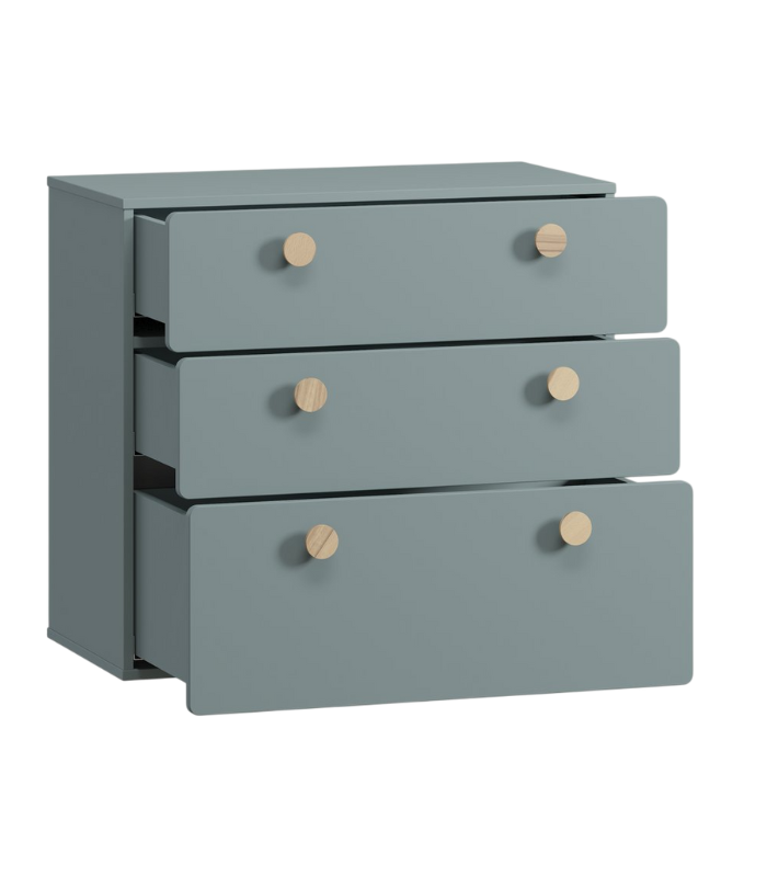 Gam xanh dương nhạt dịu mát gợi cảm giác yên bình, thích hợp với không gian nghỉ ngơi hoặc phòng trẻ em. Thiết kế gồm 3 ngăn kéo rộng rãi, giúp người dùng lưu trữ quần áo, tài liệu hay vật dụng cá nhân gọn gàng, ngăn nắp.