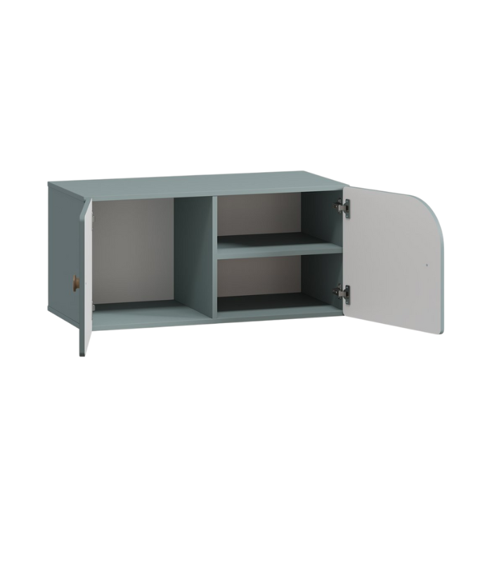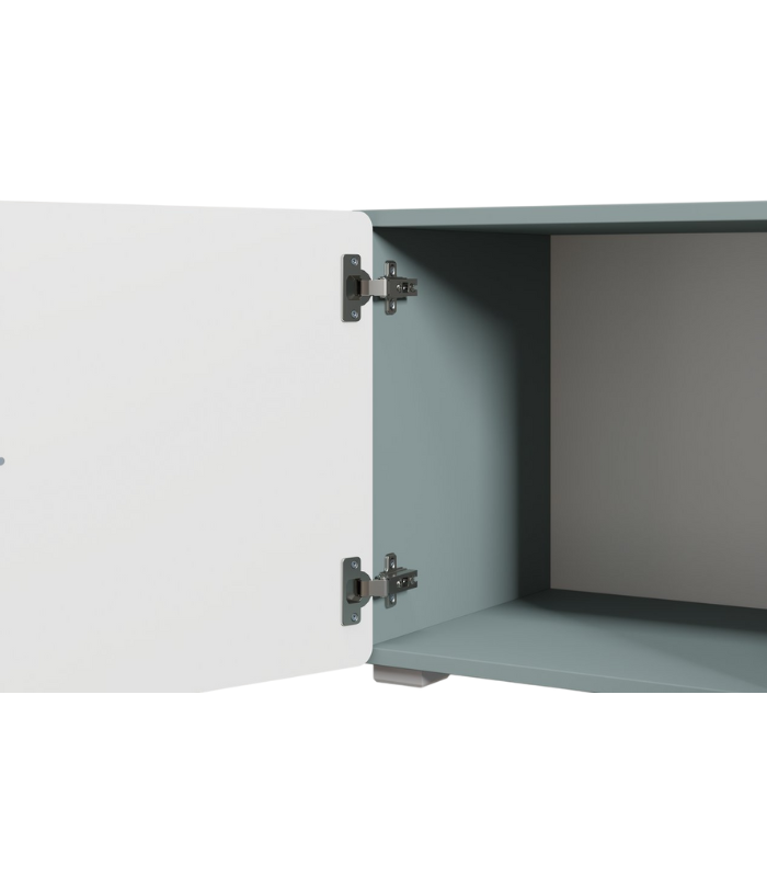 Với kích thước 89 x 42 x 44 cm, tủ có thiết kế nhỏ gọn, phù hợp với nhiều vị trí như phòng khách, phòng ngủ hay phòng làm việc. Chất liệu MDF phủ melamine chống ẩm giúp sản phẩm bền bỉ, chống trầy xước và dễ vệ sinh. Cánh tủ được sơn PU một mặt, tạo bề mặt mịn đẹp và bền màu theo thời gian. Gam màu xanh dương nhạt mang lại cảm giác tươi mát, nhẹ nhàng và thư giãn cho không gian. Tay nắm gỗ tròn tự nhiên tạo điểm nhấn tinh tế, hài hòa cùng tổng thể thiết kế. Các cạnh tủ được bo tròn an toàn, phù hợp cho gia đình có trẻ nhỏ.