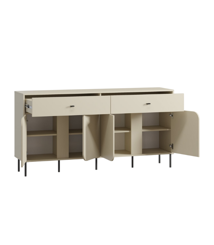 Kích thước 175cm x 40cm x 87cm giúp tủ dài, gọn gàng, dễ bố trí và tận dụng tối đa không gian lưu trữ. Thiết kế gồm gồm 2 hộc tủ ngang rộng và 4 cánh tủ, hỗ trợ sắp xếp đồ dùng, tài liệu hoặc vật dụng trang trí ngăn nắp.