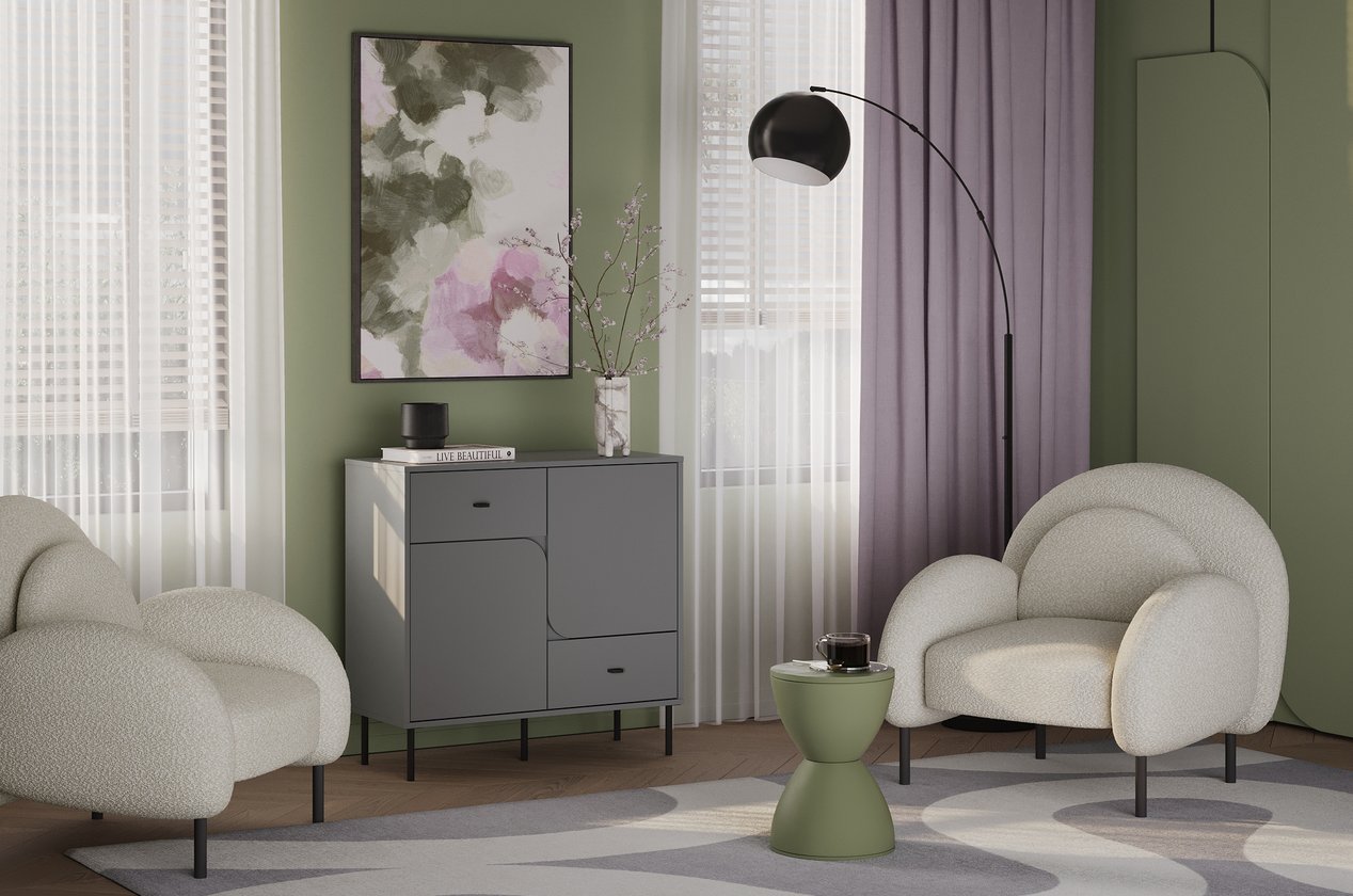 Tủ Ngăn Kéo Blest Xám Chì – 1 mang phong cách hiện đại, tối giản và thanh lịch, phù hợp với nhiều không gian từ phòng khách, phòng ngủ đến phòng làm việc.
