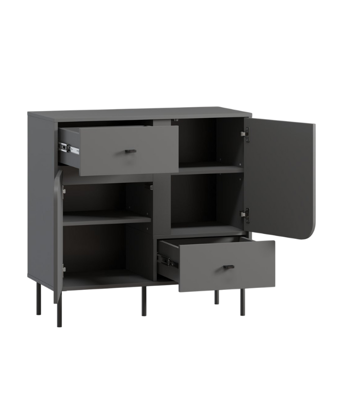 Tủ được thiết kế gồm 02 ngăn kéo và 02 cánh tủ, giúp bạn dễ dàng sắp xếp đồ dùng cá nhân, tài liệu, vật dụng trang trí hay những vật dụng cần bảo quản riêng tư.