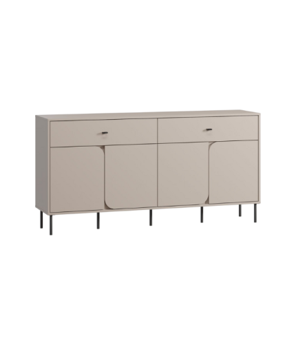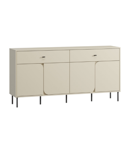 Thiết kế gồm 2 hộc tủ ngang lớn và 4 cánh tủ, mang đến sự linh hoạt trong việc sắp xếp đồ dùng, tài liệu hoặc vật dụng trang trí. Chất liệu MDF phủ melamine chống ẩm, bền màu và dễ vệ sinh, kết hợp cánh tủ sơn PU một mặt sang trọng, hài hòa với tổng thể hiện đại.