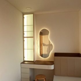 Tủ màu cà phê sữa tạo cảm giác ấm cúng cho căn phòng.