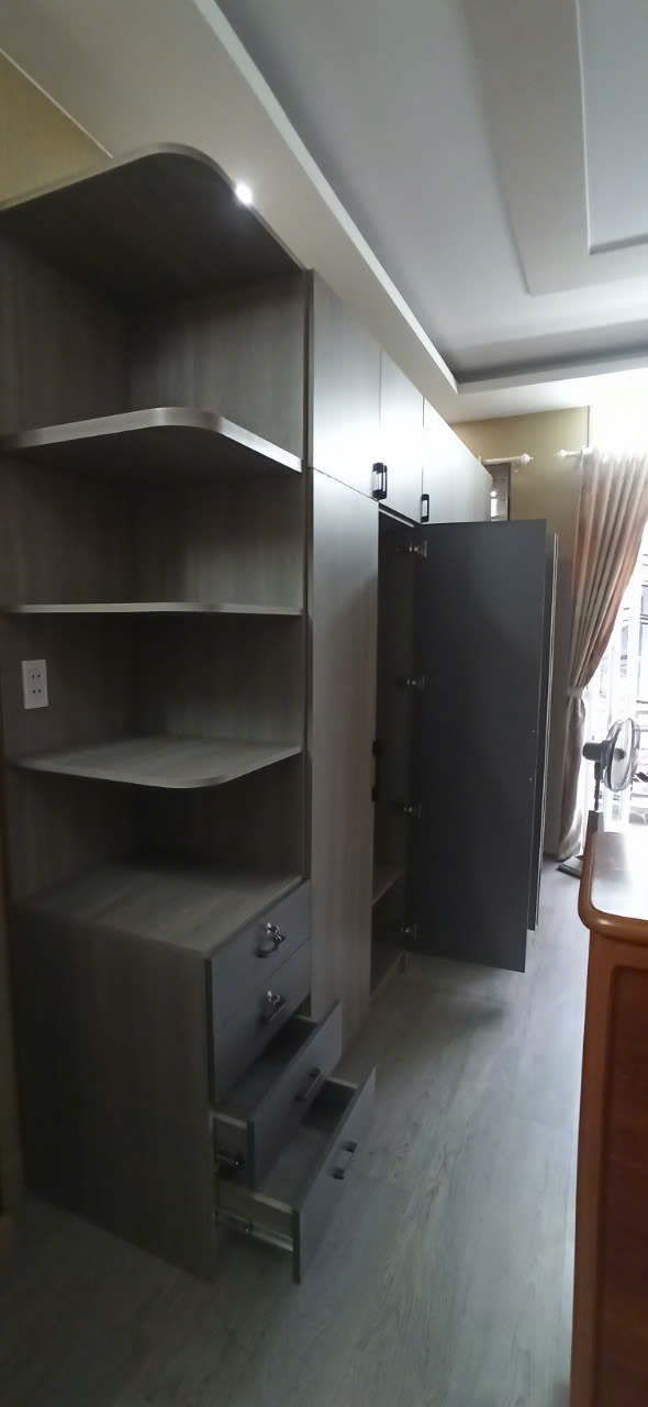 Màu tủ phù hợp với sàn và tường nhà.
