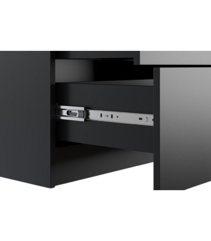 Tủ ngăn kéo Kimball Đen – 1 mang phong cách hiện đại, sang trọng, là lựa chọn lý tưởng cho không gian phòng ngủ, phòng làm việc hay phòng khách. Sản phẩm được chế tác từ gỗ MDF phủ Melamine chống ẩm, có khả năng chống trầy, dễ lau chùi và bền bỉ theo thời gian.