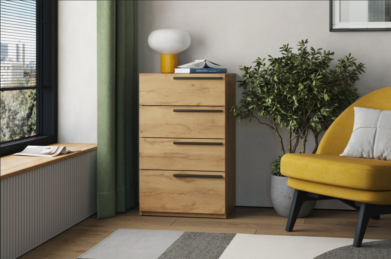 Thiết kế 4 ngăn kéo rộng rãi, mang lại khả năng lưu trữ linh hoạt, phù hợp cho nhiều nhu cầu sử dụng khác nhau. Kimball Màu Gỗ Sồi – 2 là lựa chọn lý tưởng cho những ai yêu thích nét mộc mạc, tự nhiên nhưng vẫn muốn giữ sự tinh tế và hiện đại.