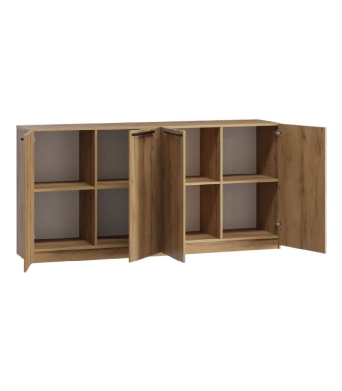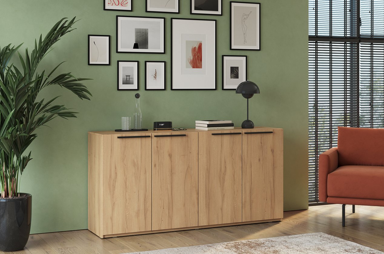 Thiết kế tủ dài với 2 khoang đối xứng, mỗi bên 2 cánh mở, bên trong bố trí 4 hộc vuông rộng rãi giúp tối ưu hóa công năng lưu trữ. Gam gỗ sồi tự nhiên giúp không gian thêm phần ấm áp, gần gũi mà vẫn hiện đại, sang trọng. Là sự kết hợp hoàn hảo giữa tính thẩm mỹ, công năng và độ bền vượt trội – đúng chuẩn phong cách TinHome.