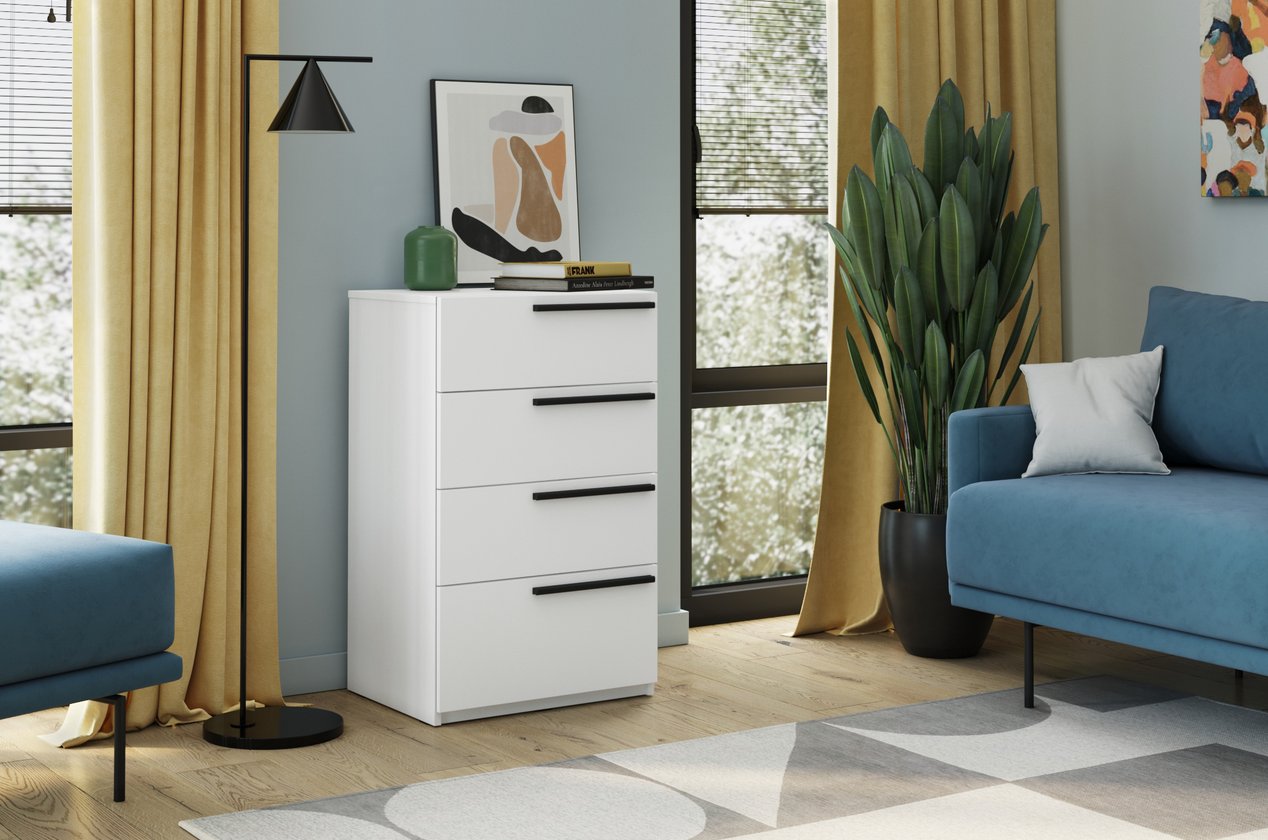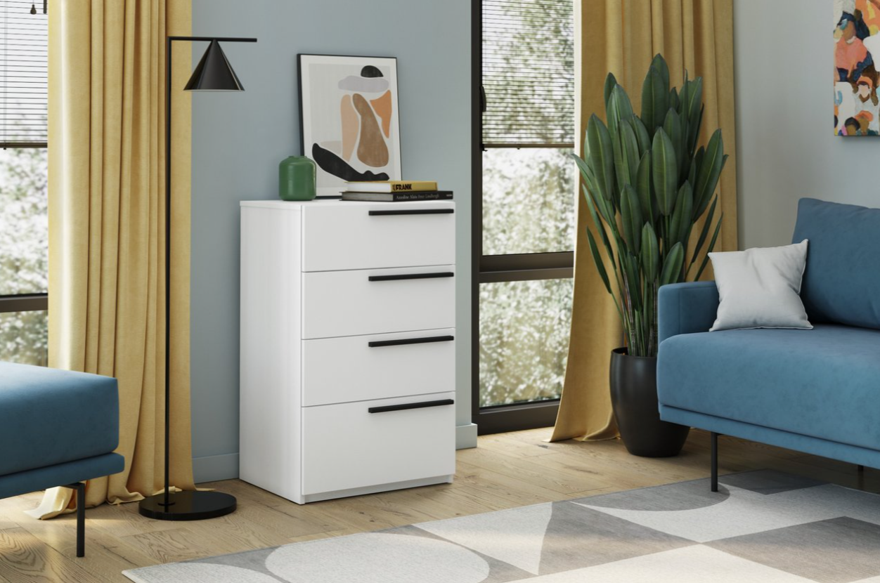 Với 4 ngăn kéo tiện dụng, sản phẩm giúp bạn lưu trữ đồ dùng cá nhân, quần áo hay phụ kiện một cách gọn gàng, khoa học. Kimball Trắng – 2 mang đến cảm giác tinh khôi, hiện đại, là lựa chọn lý tưởng cho những ai yêu thích phong cách tối giản.