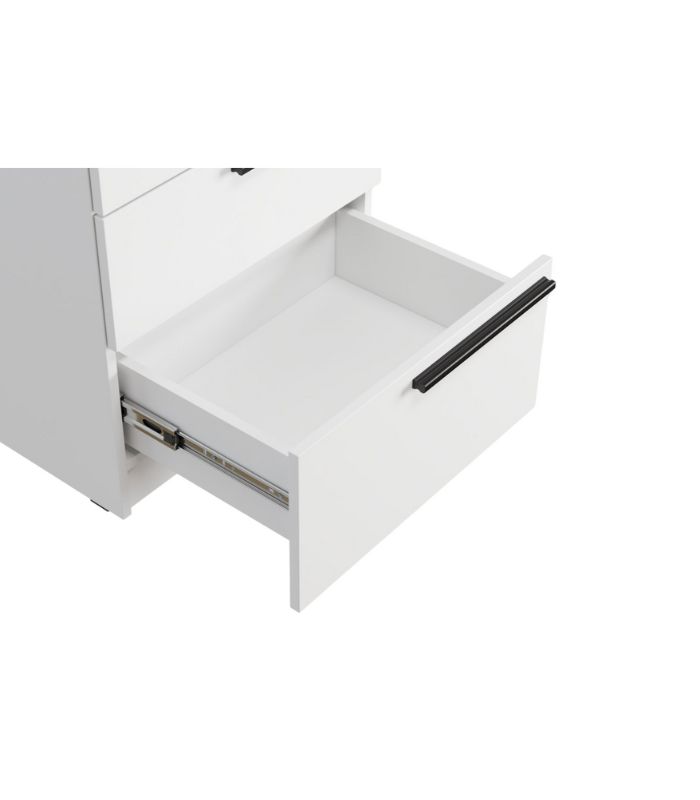 Tủ ngăn kéo Kimball Trắng – 2 gây ấn tượng với thiết kế tinh giản, sắc trắng tinh tế giúp không gian trở nên sáng sủa và rộng rãi hơn. Chất liệu gỗ MDF phủ Melamine chống ẩm mang lại độ bền cao, bề mặt mịn, chống trầy xước và dễ vệ sinh.