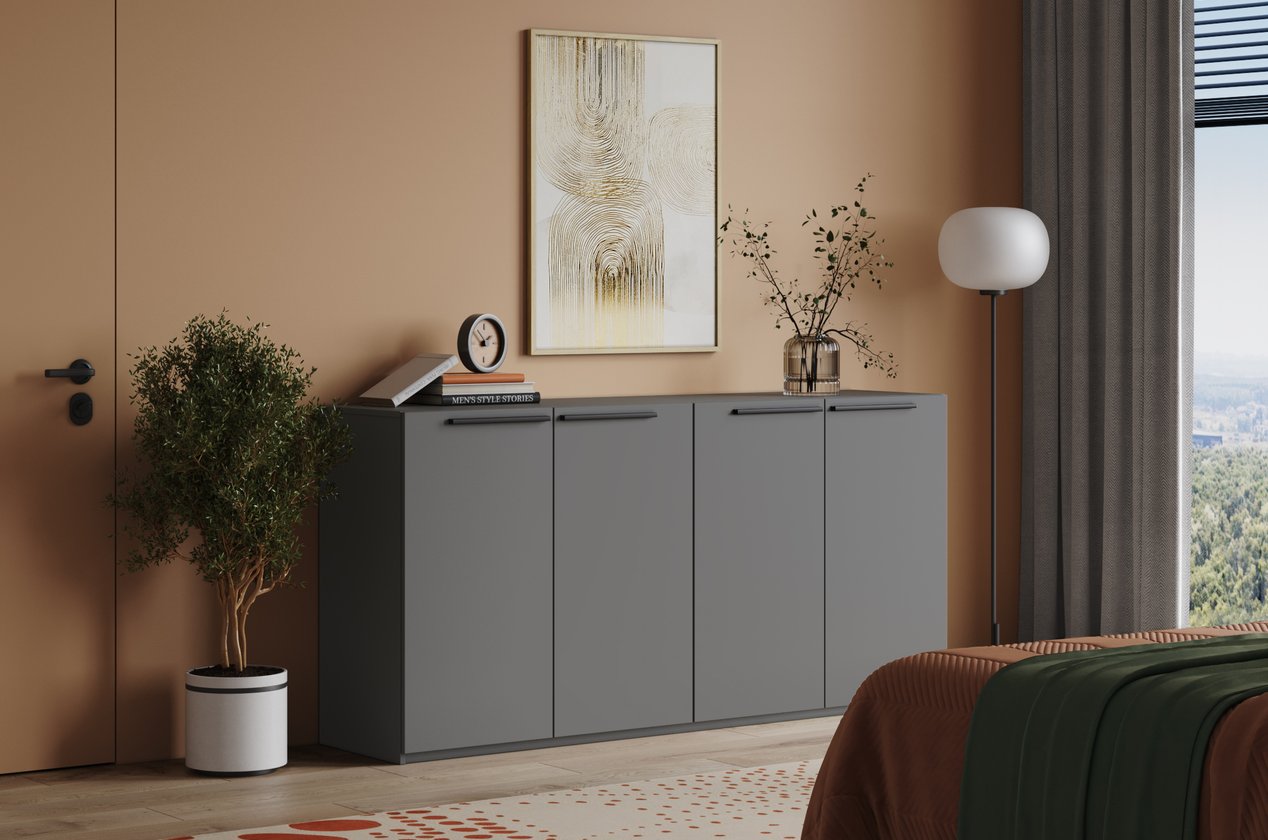 Tủ được chia thành hai khoang chính, mỗi khoang 2 cánh mở với 4 hộc vuông bên trong, giúp lưu trữ và sắp xếp đồ dùng khoa học. Gam xám chì thời thượng dễ phối hợp với các màu nội thất sáng hoặc tối, tạo cảm giác hài hòa và hiện đại. Hoàn hảo cho những ai yêu thích phong cách nội thất tinh giản, sang trọng và thực dụng.