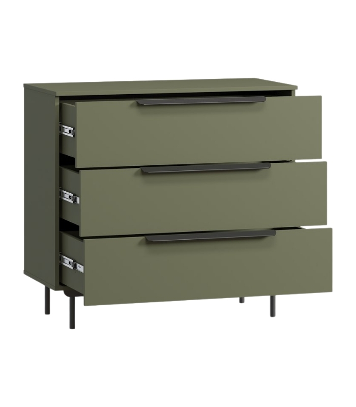 Tủ Ngăn Kéo Kvelen Xanh Olive mang đến cảm giác tươi mát và thanh bình cho căn phòng. Gam xanh olive nhẹ dịu gợi liên tưởng đến thiên nhiên, giúp tạo điểm nhấn độc đáo mà vẫn dễ phối với nội thất gỗ hoặc tông trung tính.