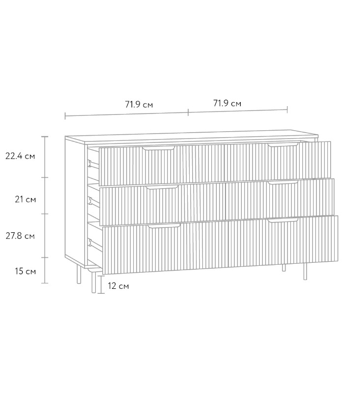 Với 6 hộc kéo lớn, tủ giúp lưu trữ quần áo, tài liệu hoặc các vật dụng cá nhân một cách khoa học, giữ không gian luôn ngăn nắp. Kích thước 144 x 45 x 86 cm vừa rộng rãi vừa thanh thoát, phù hợp cho phòng ngủ hoặc phòng làm việc hiện đại.
