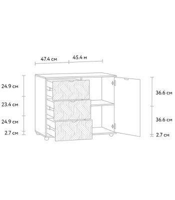 Với kích thước 93x50x76, tủ phù hợp đặt trong phòng ngủ, phòng khách, hoặc khu vực trang trí.