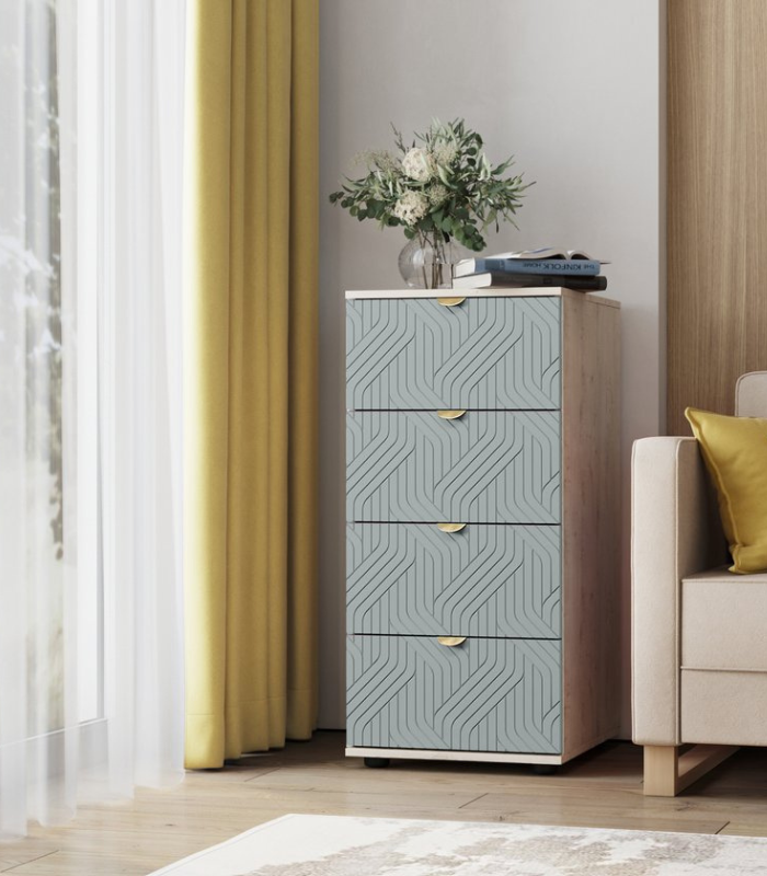 Màu Xanh Dương Nhạt trẻ trung, phù hợp cho các không gian muốn tạo cảm giác nhẹ nhàng, thoáng đãng. Tủ gồm 4 ngăn kéo tiện dụng, giúp bạn dễ dàng sắp xếp phụ kiện, quần áo hoặc tài liệu. Tủ phù hợp với phòng ngủ, phòng làm việc hoặc khu vực trang trí. Thiết kế thanh lịch giúp nâng tầm tổng thể không gian. Đây là lựa chọn lý tưởng cho người yêu thích sự trẻ trung nhưng vẫn cần sự tiện dụng. Sản phẩm hội tụ đầy đủ thẩm mỹ, độ bền và khả năng tối ưu hóa không gian.