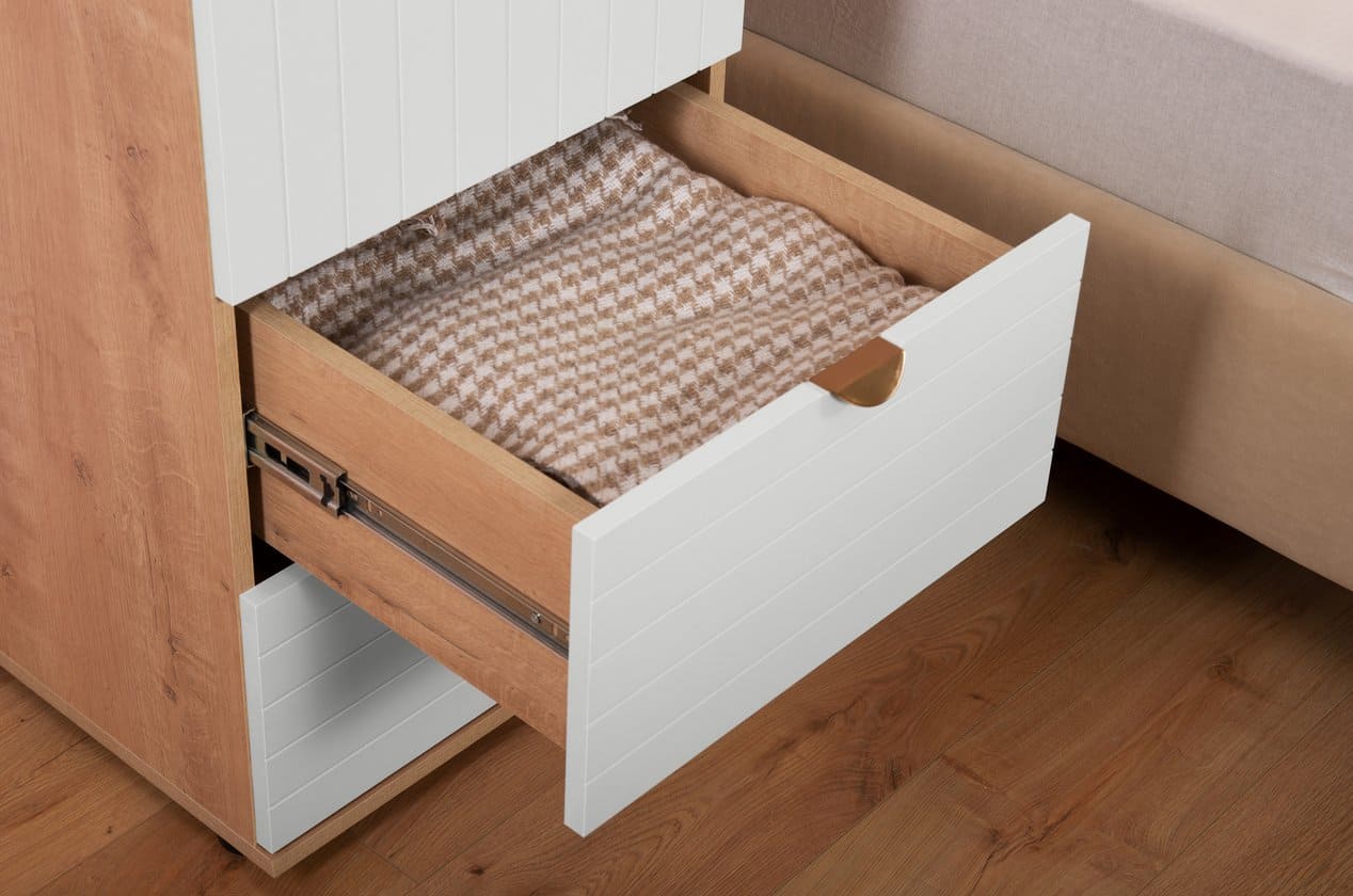 Với kích thước 47x50x99 cm, tủ nhỏ gọn nhưng tối ưu công năng. 4 ngăn kéo tiện lợi giúp sắp xếp quần áo, phụ kiện, tài liệu và vật dụng cá nhân một cách khoa học. Hệ thống ray trượt chất lượng cao mang lại trải nghiệm đóng mở mượt mà, bền bỉ. Từng chi tiết từ tay nắm đến cạnh tủ được gia công tỉ mỉ, tạo cảm giác chắc chắn và thẩm mỹ cao.