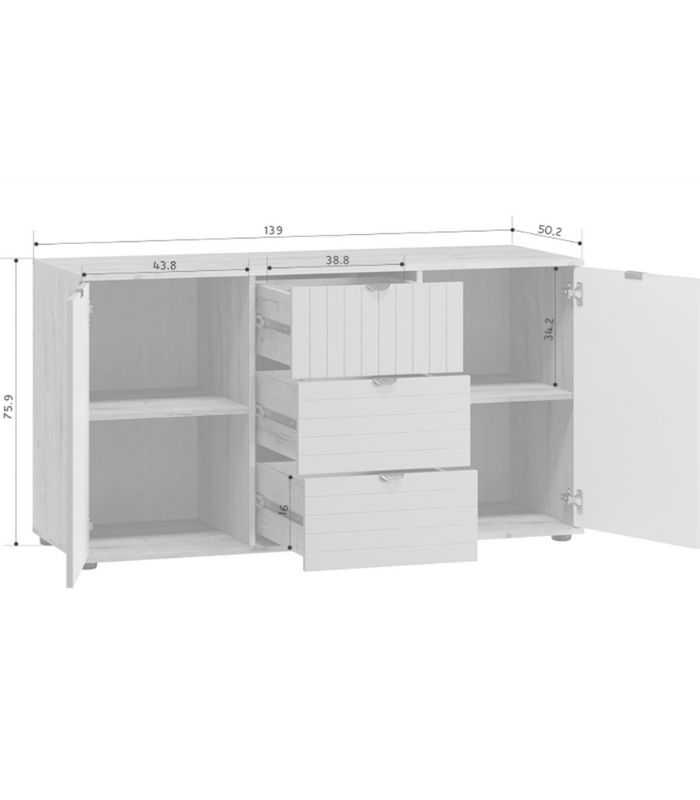 Kích thước 139x50x76 cm gọn gàng nhưng tối ưu công năng. Thiết kế gồm 2 cánh ngoài với 2 ngăn kệ bên trong và cánh giữa 3 ngăn kéo, giúp sắp xếp quần áo, phụ kiện, sách vở và vật dụng cá nhân khoa học.