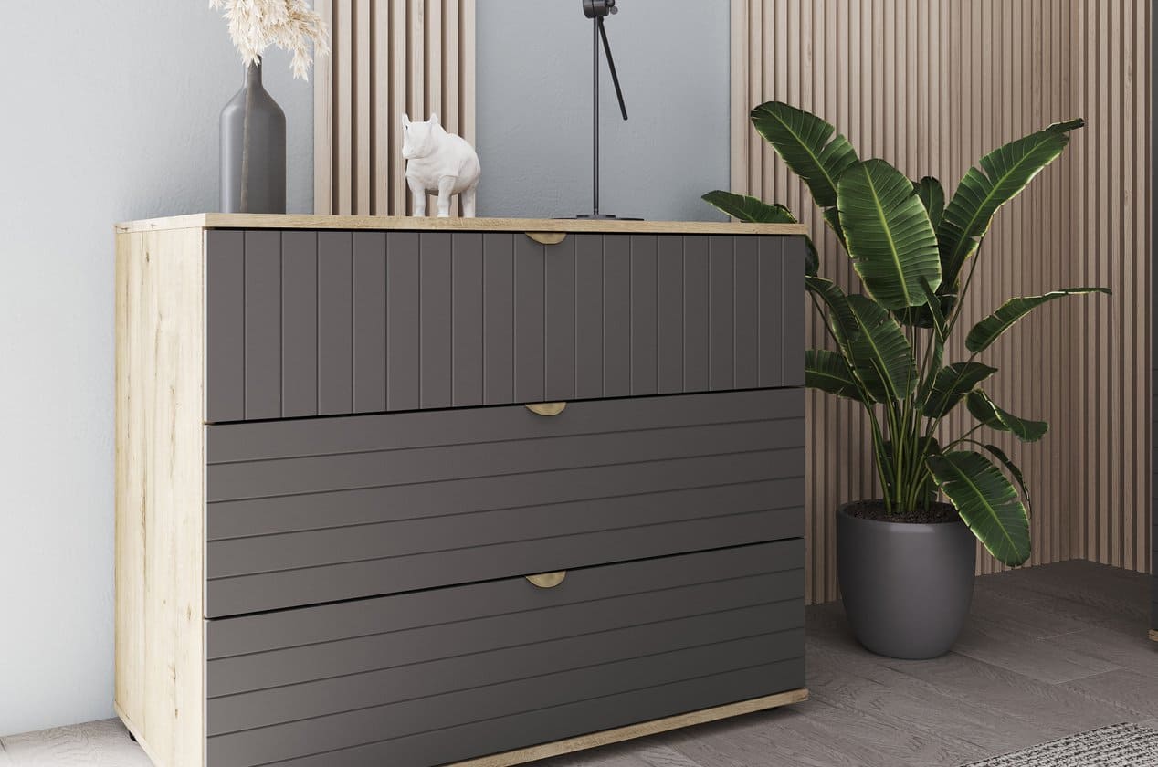 Tủ ngăn kéo Mont Blanc Line Xám Chì-3 là giải pháp lưu trữ thông minh cho không gian sống hiện đại. Chất liệu MDF phủ melamine chống ẩm đảm bảo độ bền cao, hạn chế cong vênh theo thời gian. Cánh tủ sơn PU một mặt mang lại bề mặt bóng mịn, sang trọng và dễ vệ sinh.