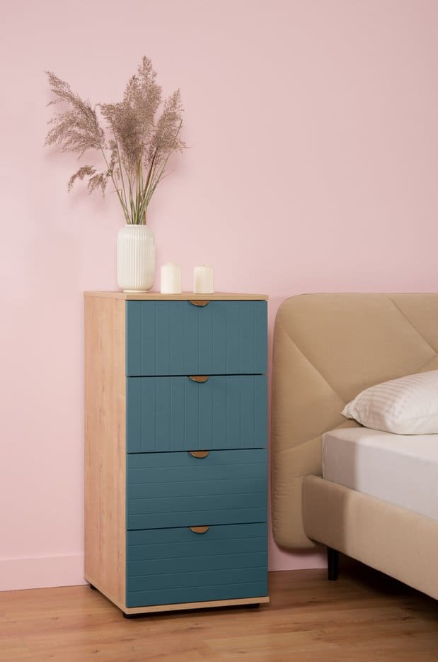 Với kích thước 47x50x99 cm, tủ nhỏ gọn nhưng đầy đủ công năng. 4 ngăn kéo tiện lợi giúp lưu trữ quần áo, phụ kiện, tài liệu và vật dụng cá nhân một cách khoa học. Hệ thống ray trượt chất lượng cao mang lại trải nghiệm đóng mở nhẹ nhàng, bền bỉ. Các chi tiết được gia công tỉ mỉ, từ tay nắm đến cạnh tủ, tạo cảm giác chắc chắn và tinh tế.