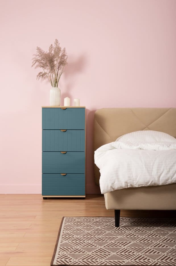 Với kích thước 47x50x99 cm, tủ nhỏ gọn nhưng đầy đủ công năng. 4 ngăn kéo tiện lợi giúp lưu trữ quần áo, phụ kiện, tài liệu và vật dụng cá nhân một cách khoa học. Hệ thống ray trượt chất lượng cao mang lại trải nghiệm đóng mở nhẹ nhàng, bền bỉ. Các chi tiết được gia công tỉ mỉ, từ tay nắm đến cạnh tủ, tạo cảm giác chắc chắn và tinh tế.