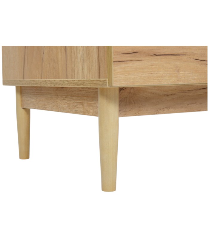 Chân gỗ tự nhiên được xử lý chắc chắn, tạo thế đứng vững vàng đồng thời tôn lên vẻ thanh thoát cho tổng thể thiết kế. Từng đường nét đều được chăm chút để tủ không chỉ bền đẹp theo thời gian mà còn góp phần hoàn thiện phong cách sống tinh tế, tối giản và đầy cảm hứng.
