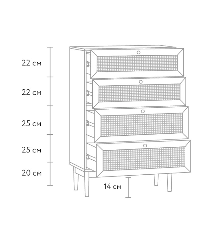 Thiết kế gồm 4 ngăn kéo lớn được sắp xếp cân đối, mang lại khả năng lưu trữ linh hoạt – từ quần áo, phụ kiện cho đến giấy tờ hay đồ dùng cá nhân. Từng ngăn kéo được vận hành êm ái, cho cảm giác sử dụng nhẹ nhàng và thuận tiện mỗi ngày.