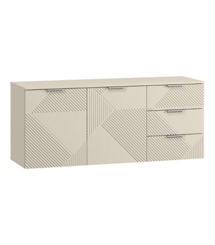 Kích thước 148x46x64cm nhỏ gọn nhưng mang sức chứa lớn cho nhu cầu sinh hoạt hằng ngày. Bố cục tủ chia thành vùng tủ cánh bên trái + giữa và cụm ngăn kéo bên phải. Hai cánh mở bên trái và giữa giấu bên trong các ngăn kệ, giúp cất đồ kín đáo và cực kỳ gọn gàng. Ba ngăn kéo bên phải giúp bạn phân loại phụ kiện, giấy tờ, đồ cá nhân hoặc đồ nhỏ tiện lợi. Tông Cà Phê Sữa ấm áp giúp không gian thêm phần thân thiện và dễ chịu.